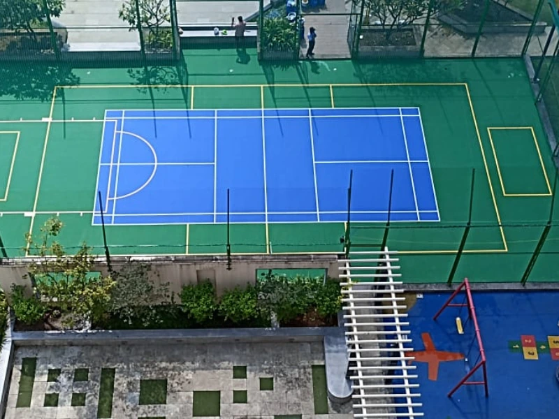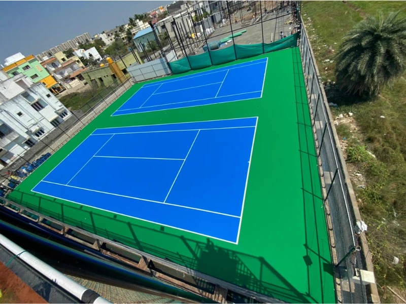Indoor or outdoor courts with high-quality flooring, drainage, and proper markings.